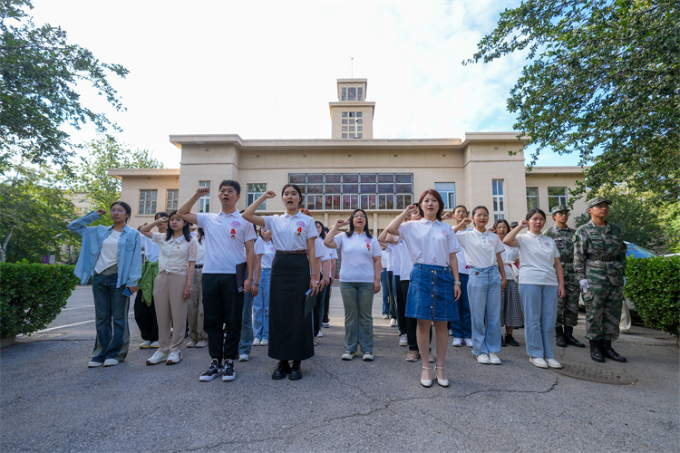 现场师生慷慨激昂地集体朗诵周恩来总理青年时期诗作《大江歌罢掉头东》。“为中华之崛起而读书,踔厉奋发,不负韶华,不负时代!”热血澎湃的誓言在现场激荡,这是南开人拒绝遗忘、铭记历史的铮铮誓言,也是以史为鉴、挺膺担当的郑重宣言。