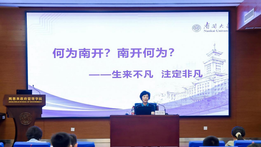 杨克欣教授以《何为南开,南开何为?生来不凡,注定非凡》为题,为政府学院2025级MPA新生们带来了一堂特殊的“开学第一课”。这场讲座如同一把钥匙,为初入南开的学子们打开了理解这所百年学府精神密码的大门。