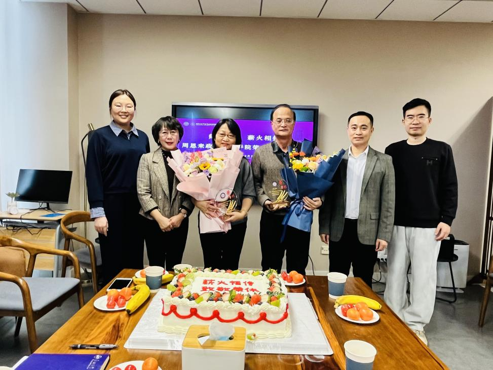 在温馨的致敬仪式上,王慧书记与吴晓林院长共同为两位老师颁发荣休纪念牌,新入职教师代表杨帆、吴亚博向荣休教师献花,表达敬意与祝福,全体与会人员合影留念,定格这珍贵瞬间。