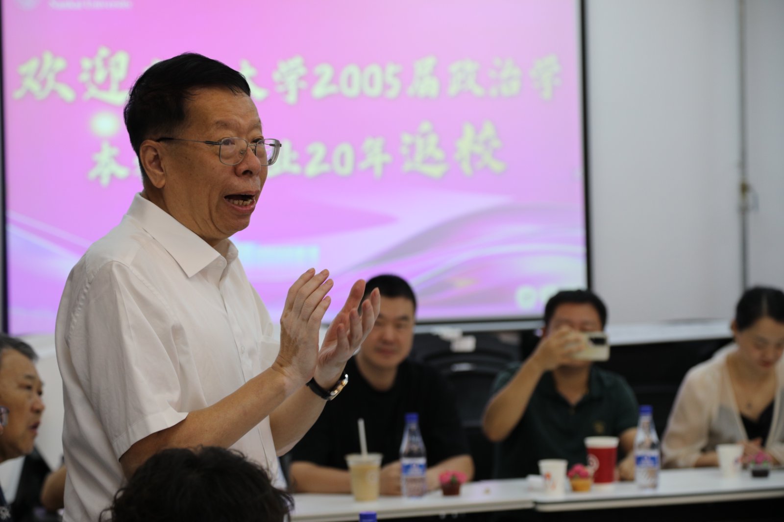 2005届政治学本科毕业生从五湖四海重返母校,在八里台校区图书馆逸夫楼举行毕业二十周年捐赠仪式暨座谈会。师生欢聚一堂,共叙青春记忆,见证温暖捐赠,为学校学院发展建言献策。