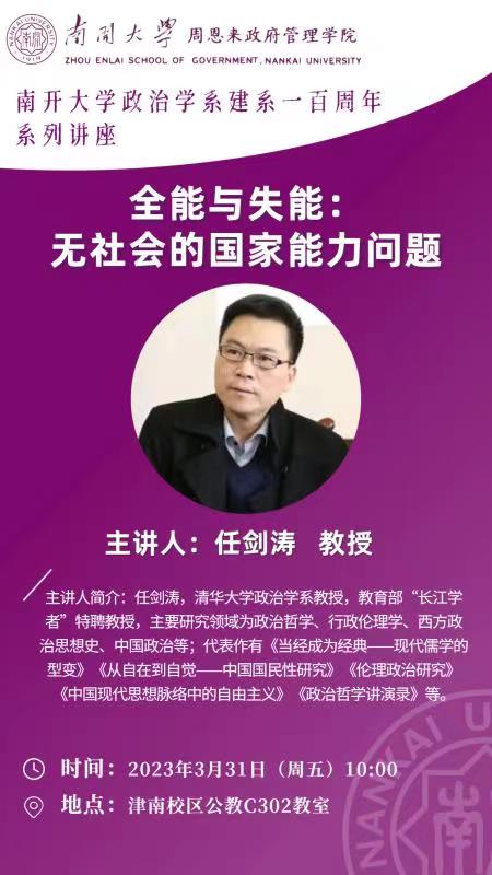 政治学系建系一百周年系列讲座继续举办,敬请关注!