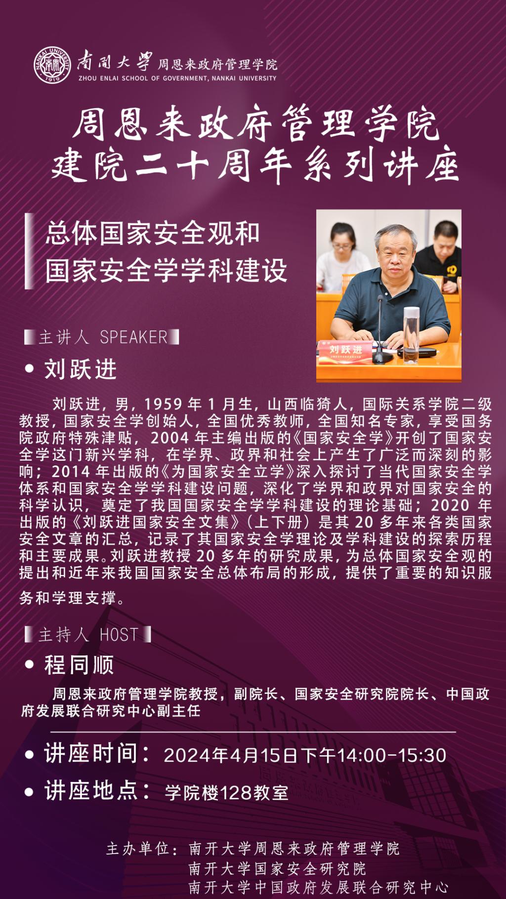 建院二十周年系列讲座:刘跃进|总体国家安全观和国家安全学学科建设