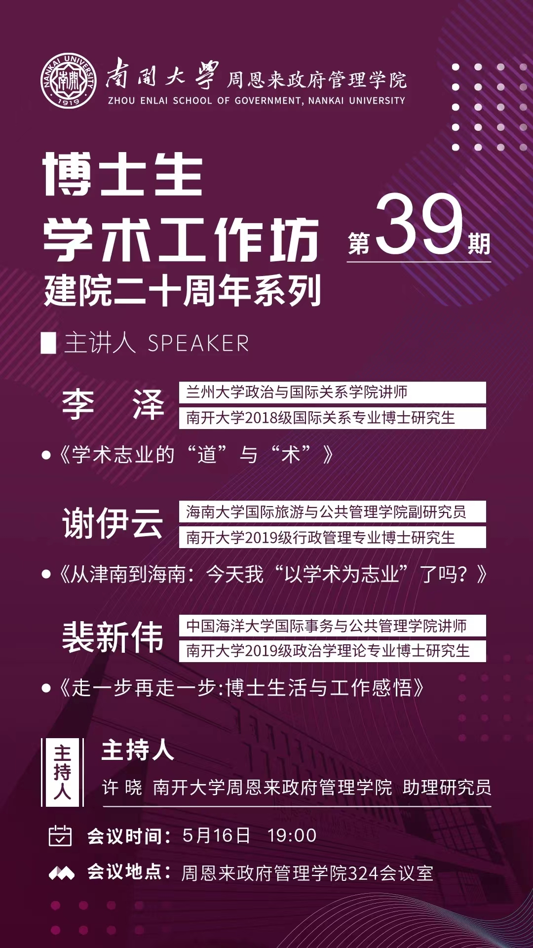 建院二十周年系列:博士生学术工作坊第39期