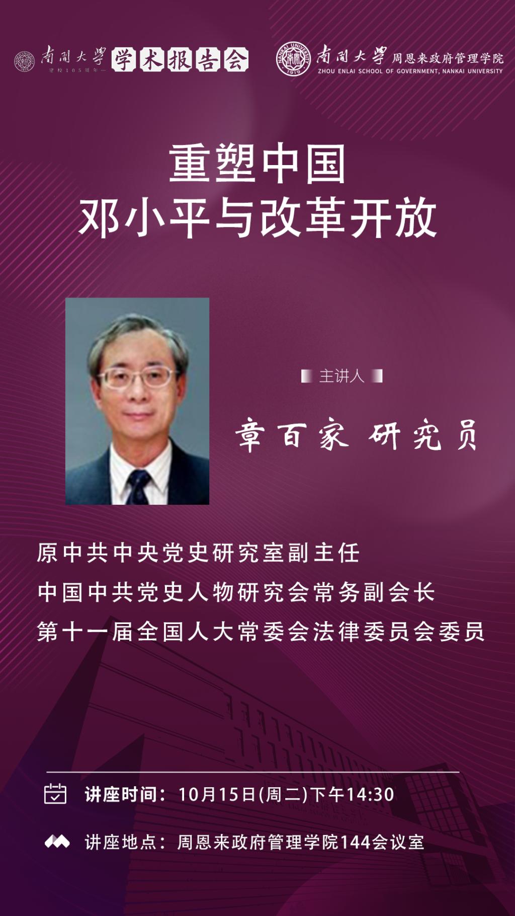 黑料718 建校105周年学术报告会|章百家:重塑中国——邓小平与改革开放
