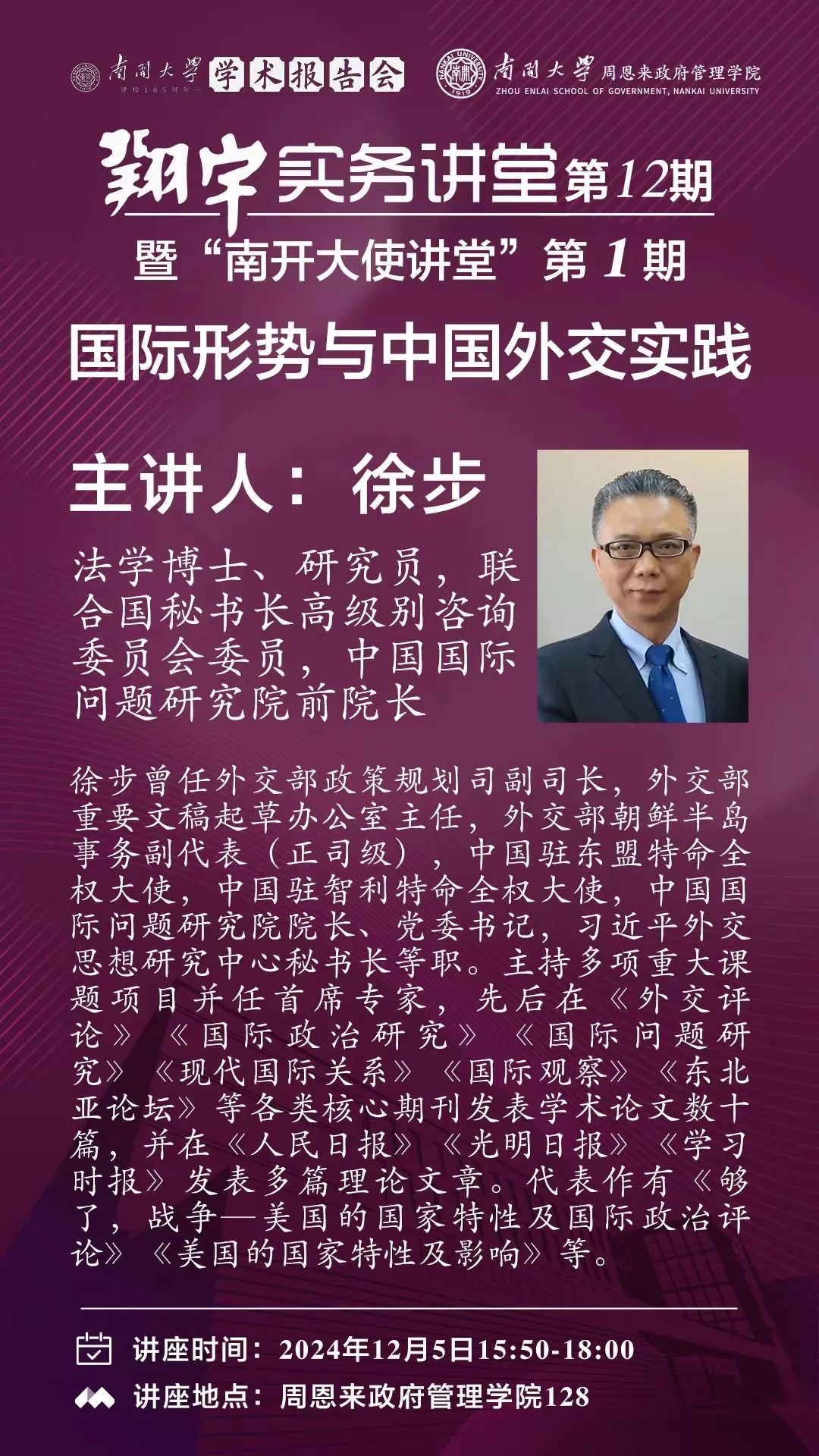 黑料718 建校105周年学术报告会|徐步:国际形势与中国外交实践