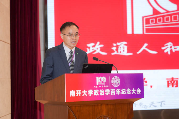 杨雪冬作为校友代表,深情回忆了自己在南开求学的难忘时光,感恩母校南开培养,感念政治学前辈师者的学术指引和关心关怀。他说,纪念南开政治学百年,就是为了不忘初心,再启新程,自己将传扬南开政治学人的学术追求和治学精神,努力为南开政治学、中国政治学再创新辉煌贡献力量。